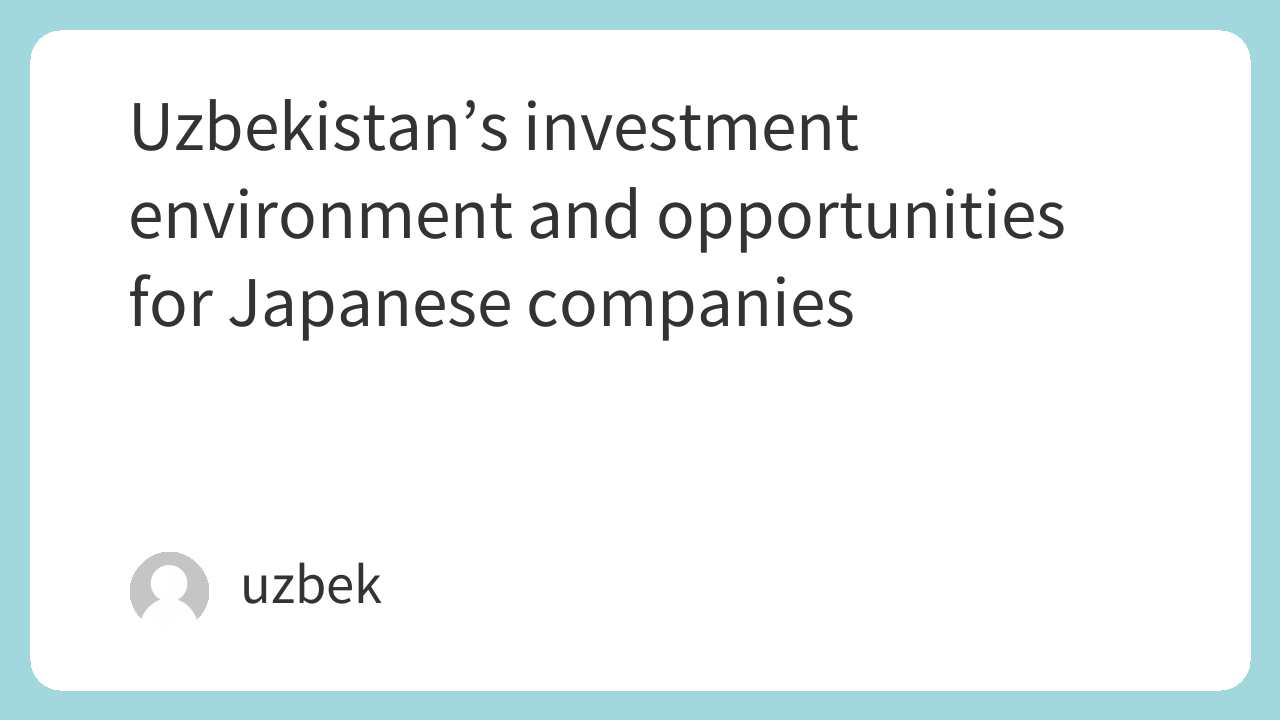 In recent years, Uzbekistan, a country in Central Asia, has been attracting attention as an investment destination due to its economic growth. This offers new market development opportunities, particularly for Japanese companies. This article provides a detailed explanation of Uzbekistan's investment environment, market trends, investment opportunities and risks for Japanese companies, and the strategic value of the Central Asian region.