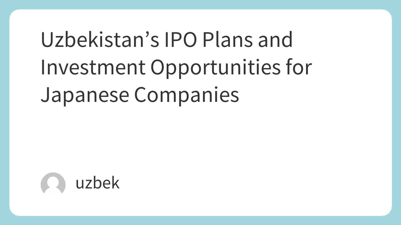 Uzbekistan's IPO Plans and Investment Opportunities for Japanese Companies