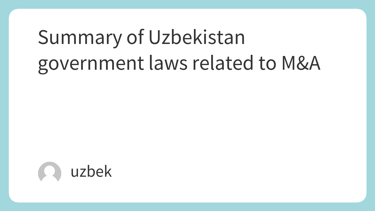 We have compiled a list of Uzbekistan's main M&A laws from an expert's perspective. The main laws and their key points are summarized in the table below.