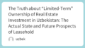 | Securities Law and Listing Rules | Law on the Securities Market, Regulations of the Central Securities Depository of Uzbekistan (CDC) | When acquiring a listed company , rules regarding tender offers , the obligation to report large-scale holdings , insider trading regulations, etc. apply. |