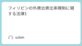 • 要点: 多額の資金を海外から送金し、将来の利益を本国に送金する際、中央銀行の定める手続きや報告義務に従う必要があります。資金調達と実行の計画において重要な法律です。