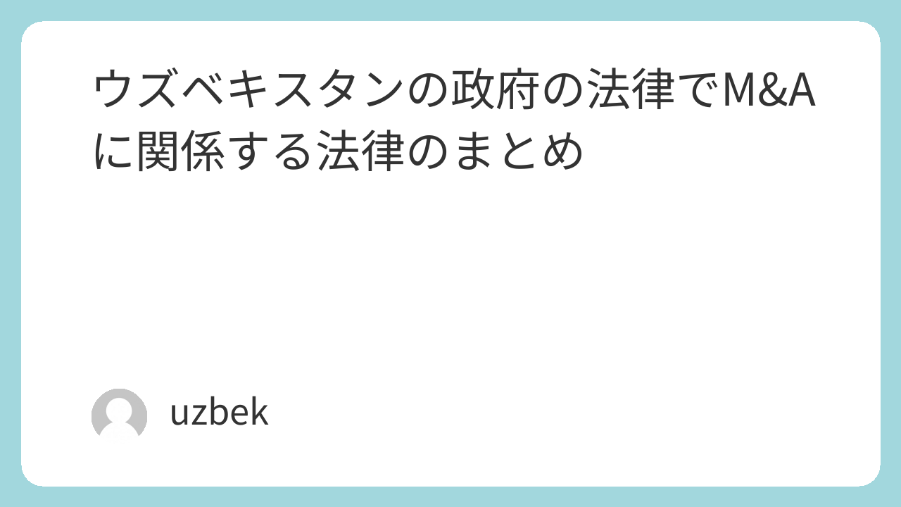 ウズベキスタンのM&Aに関する法律について、以前ご紹介した主要な法令に加えて、M&Aの実行や検討時に押さえておくべきその他の重要な法律や考慮点をまとめました。以下の表で主要な法律とその要点を整理します。