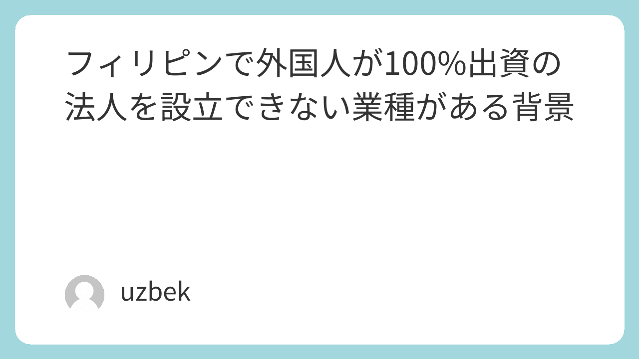 フィリピンで外国人が100%出資の法人を設立できない業種がある背景