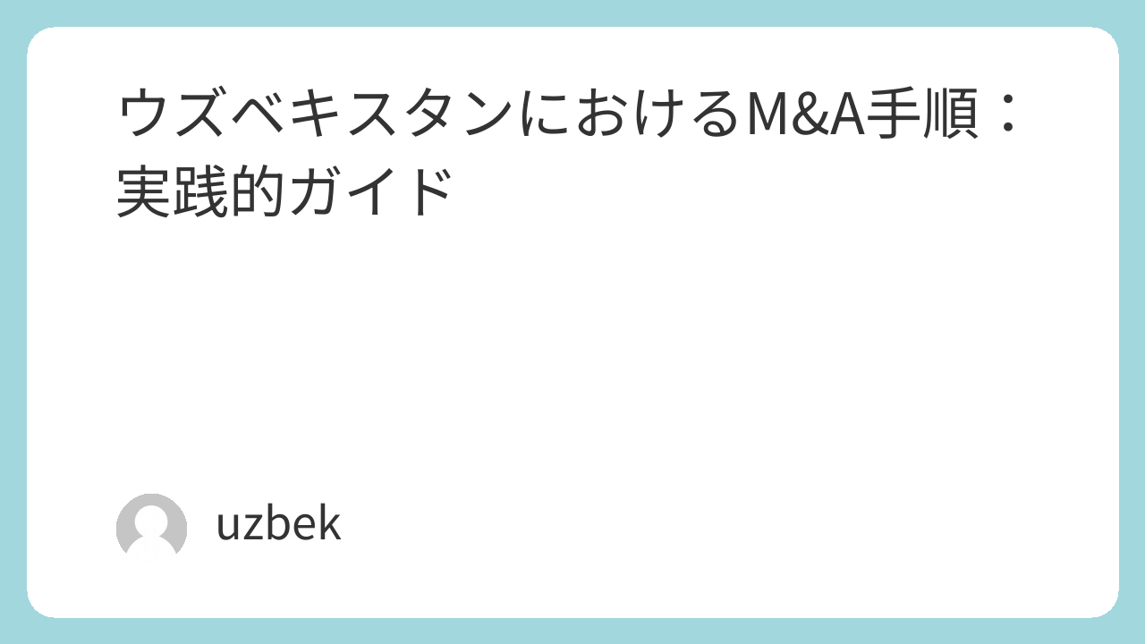 ウズベキスタンでのM&A(合併・買収)プロセスは、国際的な標準的な手順と類似していますが、現地特有の法的要件や文化的な配慮が必要です。以下に、具体的な手順を詳細に説明します。