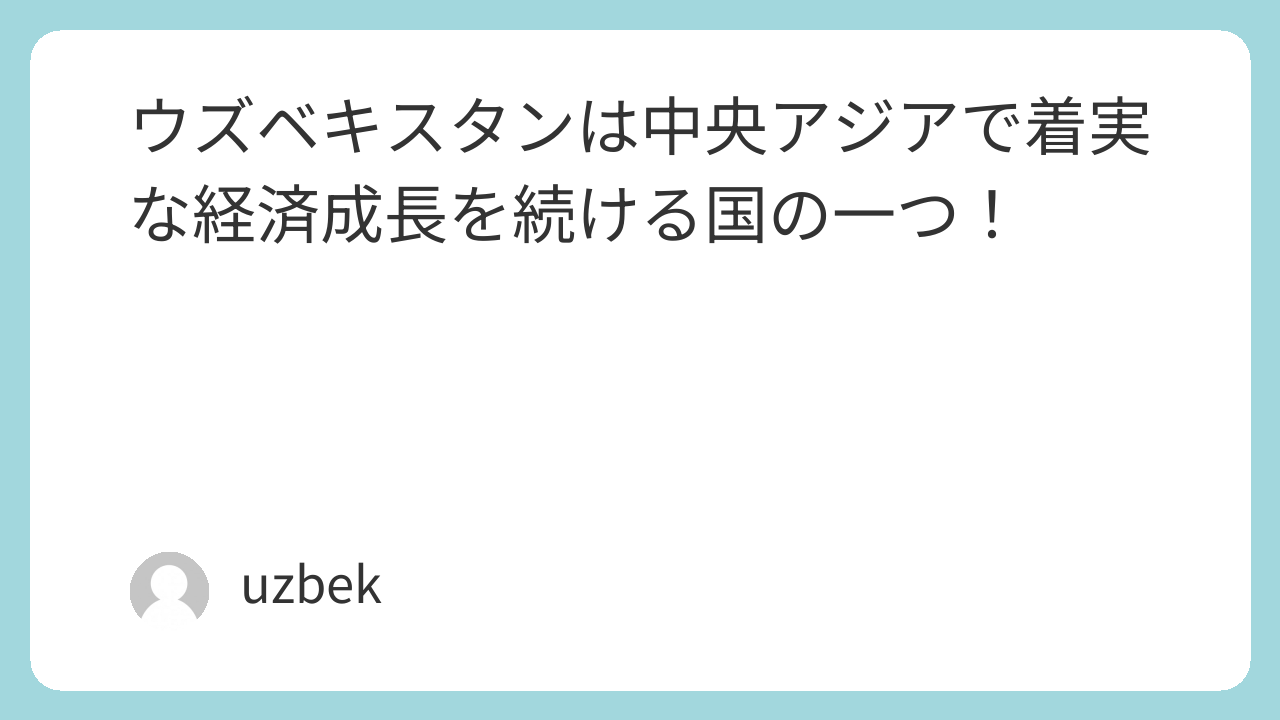 - 外部経済環境への依存: 世界経済の減速や主要貿易相手国(中国、ロシア等)の経済状況は、輸出や投資、送金などに影響を与えるため、ウズベキスタン経済にも间接的な影響を及ぼし得ます。