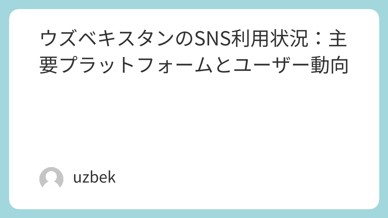 多くの国では、Facebook、Instagram、YouTube、TikTokといった世界的なプラットフォームが主要なシェアを占める傾向にあります。また、ロシアや旧ソ連諸国で人気のVK(V Kontakte) や、Telegramといったメッセージングアプリも、ウズベキスタンを含む中央アジア地域で広く利用されている可能性があります。