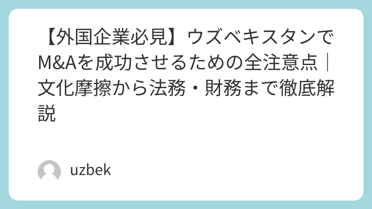 ウズベキスタンM&Aの核心:3つの超重要ポイント