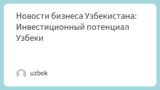 Инвестиционный ландшафт в Узбекистане продолжает развиваться, появляются новые возможности в различных секторах.