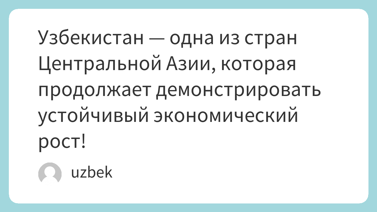 - Зависимость от внешнеэкономических условий : Замедление темпов роста мировой экономики и экономическая ситуация в странах-основных торговых партнерах (Китай, Россия и т. д.) могут оказать косвенное влияние на экономику Узбекистана, поскольку они влияют на экспорт, инвестиции, денежные переводы и т. д.