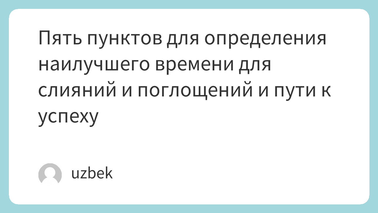 - ❗ Четыре важных момента, которые следует учитывать при принятии решения о времени слияния и поглощения