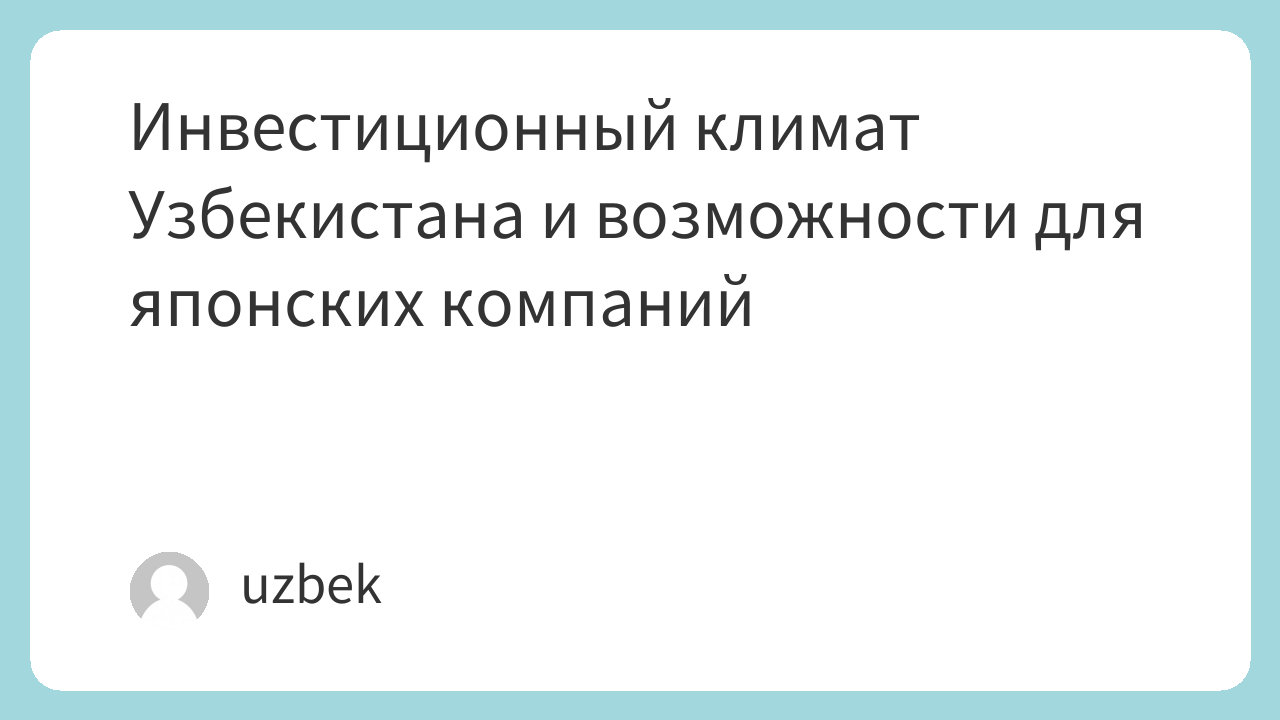 Инвестиционный климат Узбекистана и возможности для японских компаний