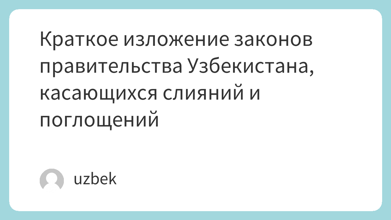 Краткое изложение законов правительства Узбекистана, касающихся слияний и поглощений
