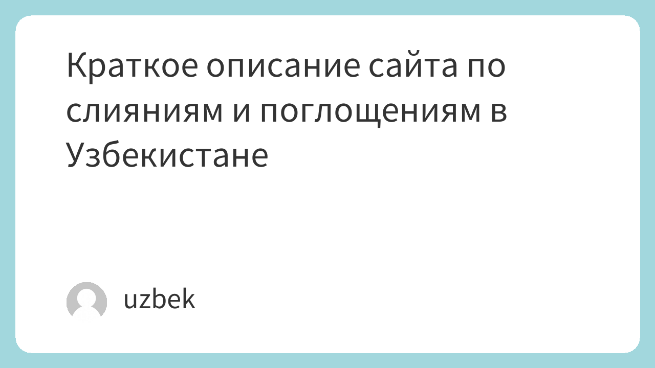 Вот несколько полезных веб-сайтов для поиска информации о слияниях и поглощениях (M&A) в Узбекистане, охватывающей юридические, налоговые, рыночные тенденции и тематические исследования, которые помогут вам принимать деловые решения.