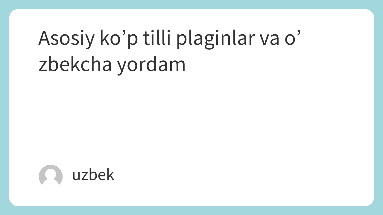 - Til sozlamalarini tekshiring : Plagin sozlamalarida oʻzbek tili mavjudligiga ishonch hosil qiling.