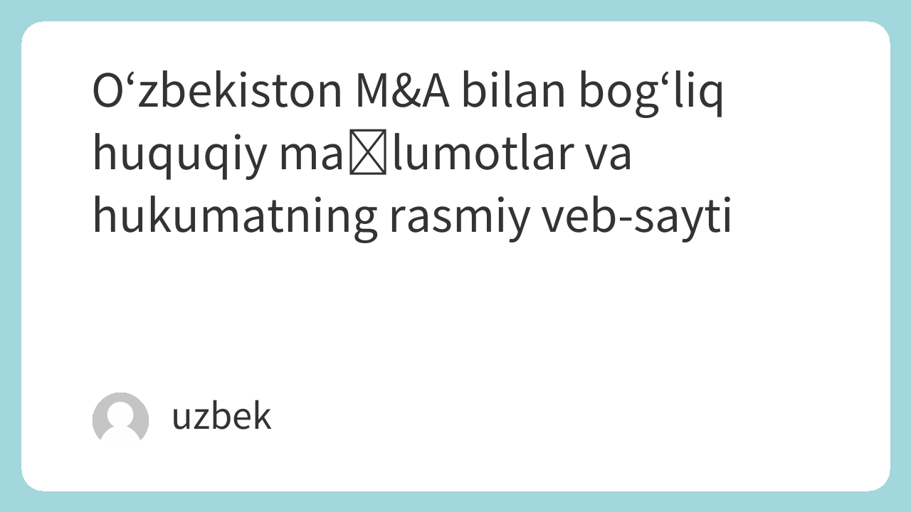 Oʻzbekiston M&A bilan bogʻliq huquqiy maʼlumotlar va hukumatning rasmiy veb-sayti