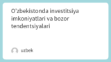 - O'zbekiston investitsiya bozorida o'sish imkoniyati