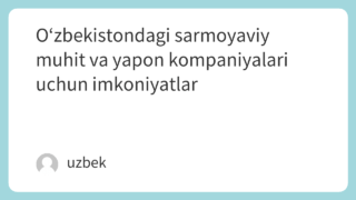 未分類 O‘zbekistondagi sarmoyaviy muhit va yapon kompaniyalari uchun imkoniyatlar