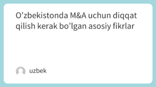 Yuridik ma'lumotlar O’zbekistonda M&A uchun diqqat qilish kerak bo’lgan asosiy fikrlar 1. Huquqiy va tartibga soluvchi muhit O‘zbekiston hukumati o‘zining IT-sektori o‘sishini qat’iy qo‘llab-quvvatlamoqda , ... 2025.09.19 Yuridik ma'lumotlar